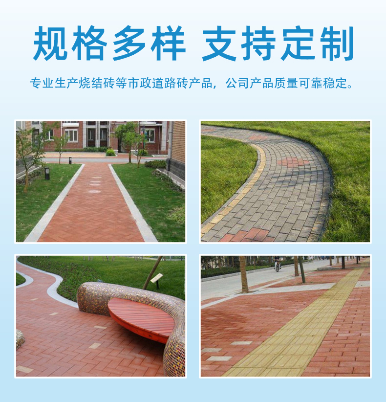 ①.廣場磚源自行業嚴格的選料標準和獨特的高溫慢燒技術,要求吸水率<5%。原料配方中的瘠性料比例占70%,可塑性原料30%左右。②.通體廣場磚仿天然花崗巖石或紫砂巖石,花紋肌理自然,質感古樸厚實,綜合物理性能優(yōu)良。